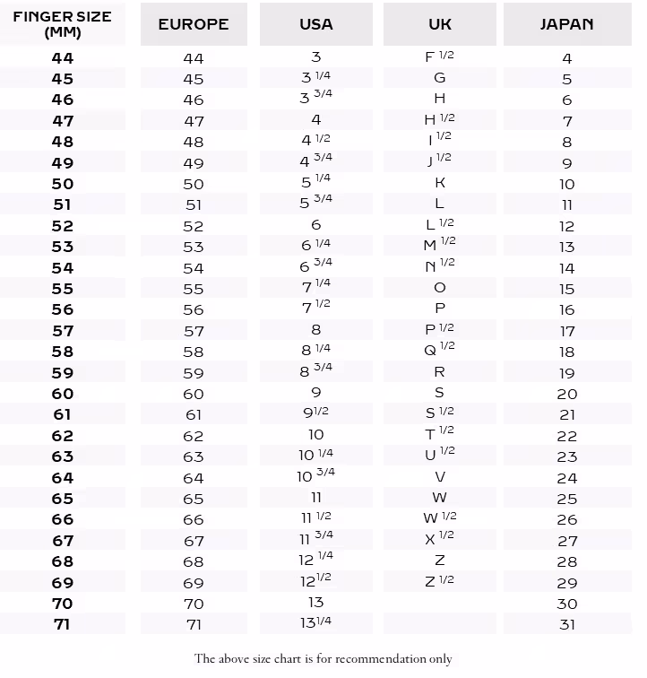 To determine your ring size, we strongly advise that you measure the size of your finger rather than the size of another ring.